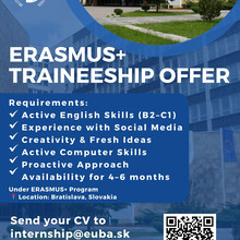 How to apply: Send your CV, letter of motivation (both in English), you can also include some of your recent work (essay/design/presentation, etc.) to internship@euba.sk.