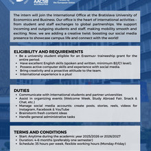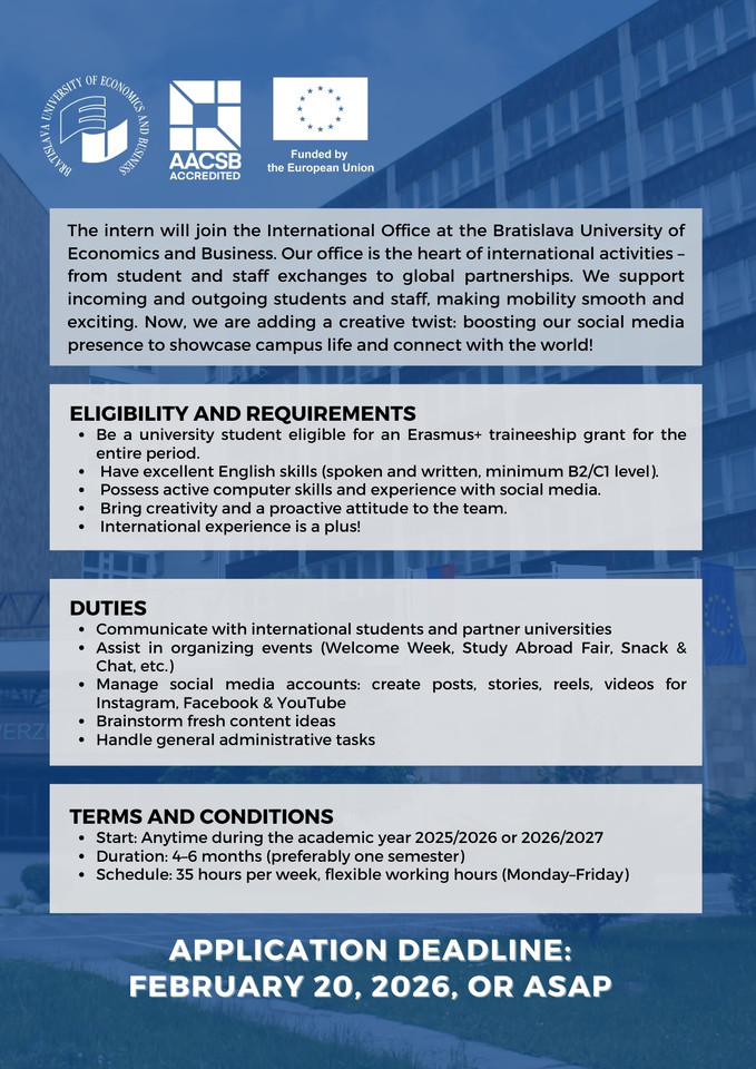 Erasmus+ Traineeship offer at International Office at EUBA in Bratislava, Slovakia